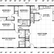 The primary suite sits privately at one end of the home, while three secondary bedrooms and a shared bath provide plenty of space for family or guests. Its rectangular footprint and simple roofline make for a fast, cost-efficient build, ideal for both owner-builders and professionals seeking predictable results.