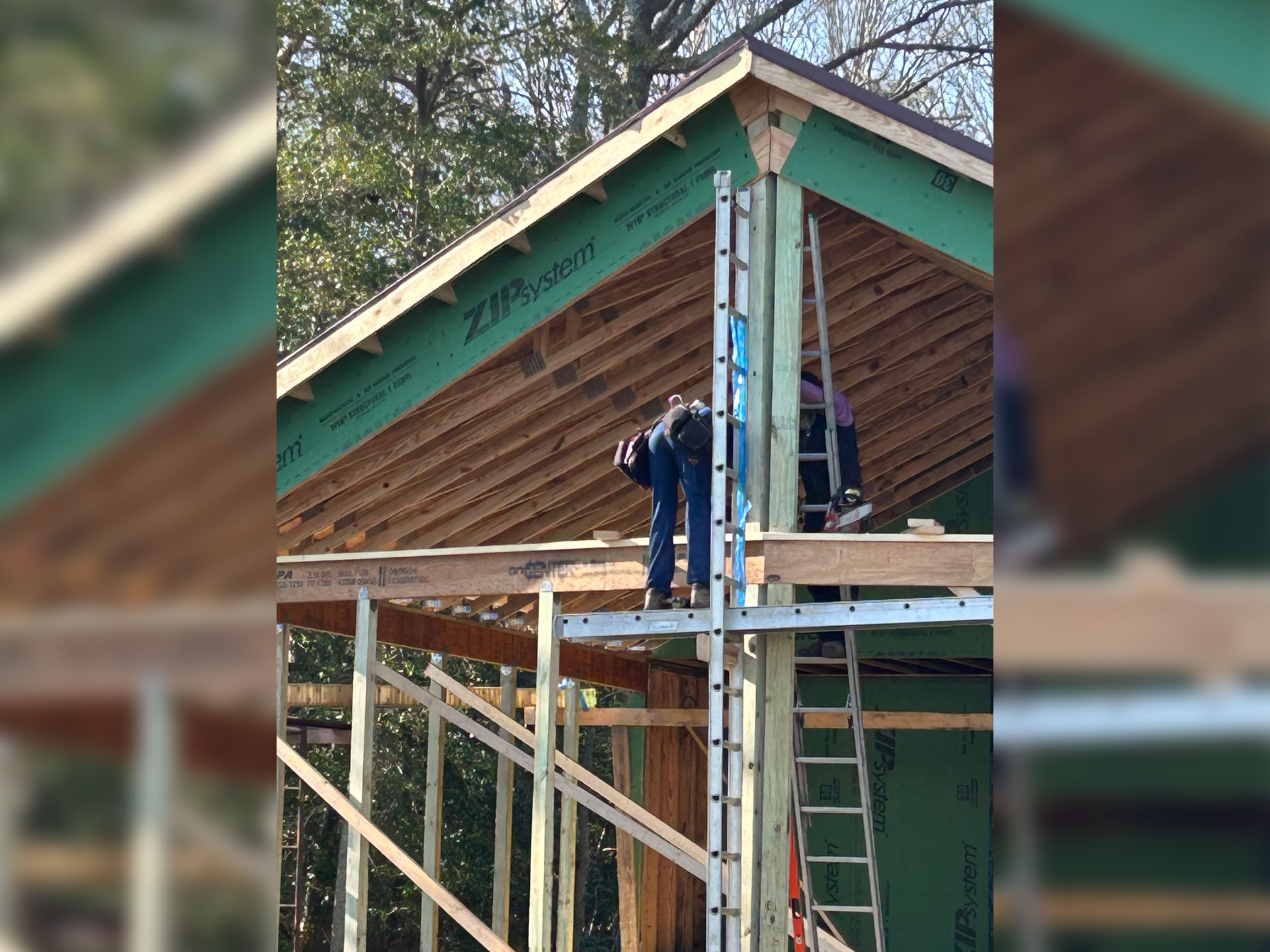 The Green-R-Panel kit included an I-Joist floor system, custom-manufactured wall panels, and engineered roof trusses—all prefabricated to simplify assembly and reduce on-site labor. In a region where humidity and seasonal storms can delay traditional builds, this system ensures a rapid dry-in and reliable structural performance.