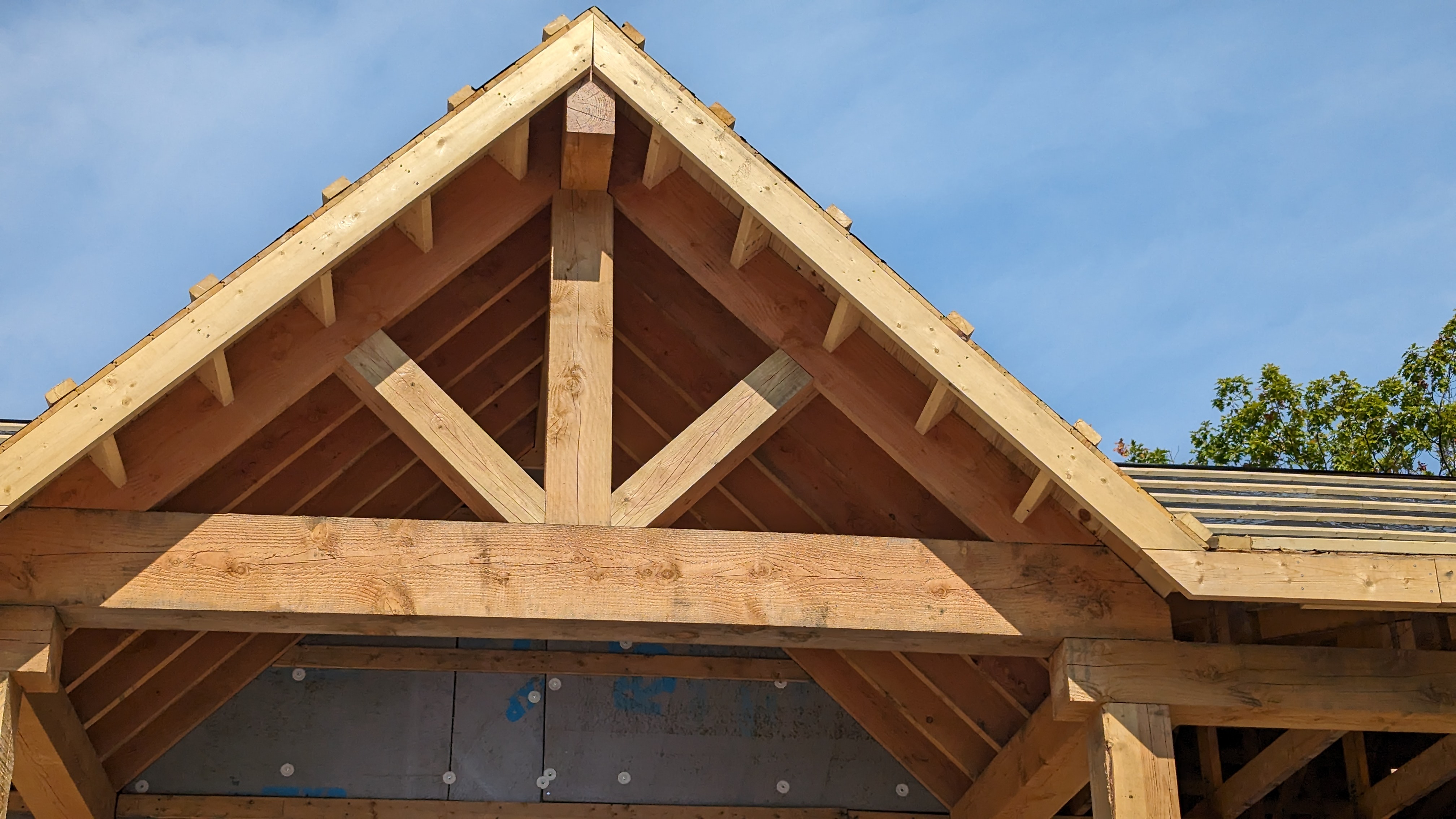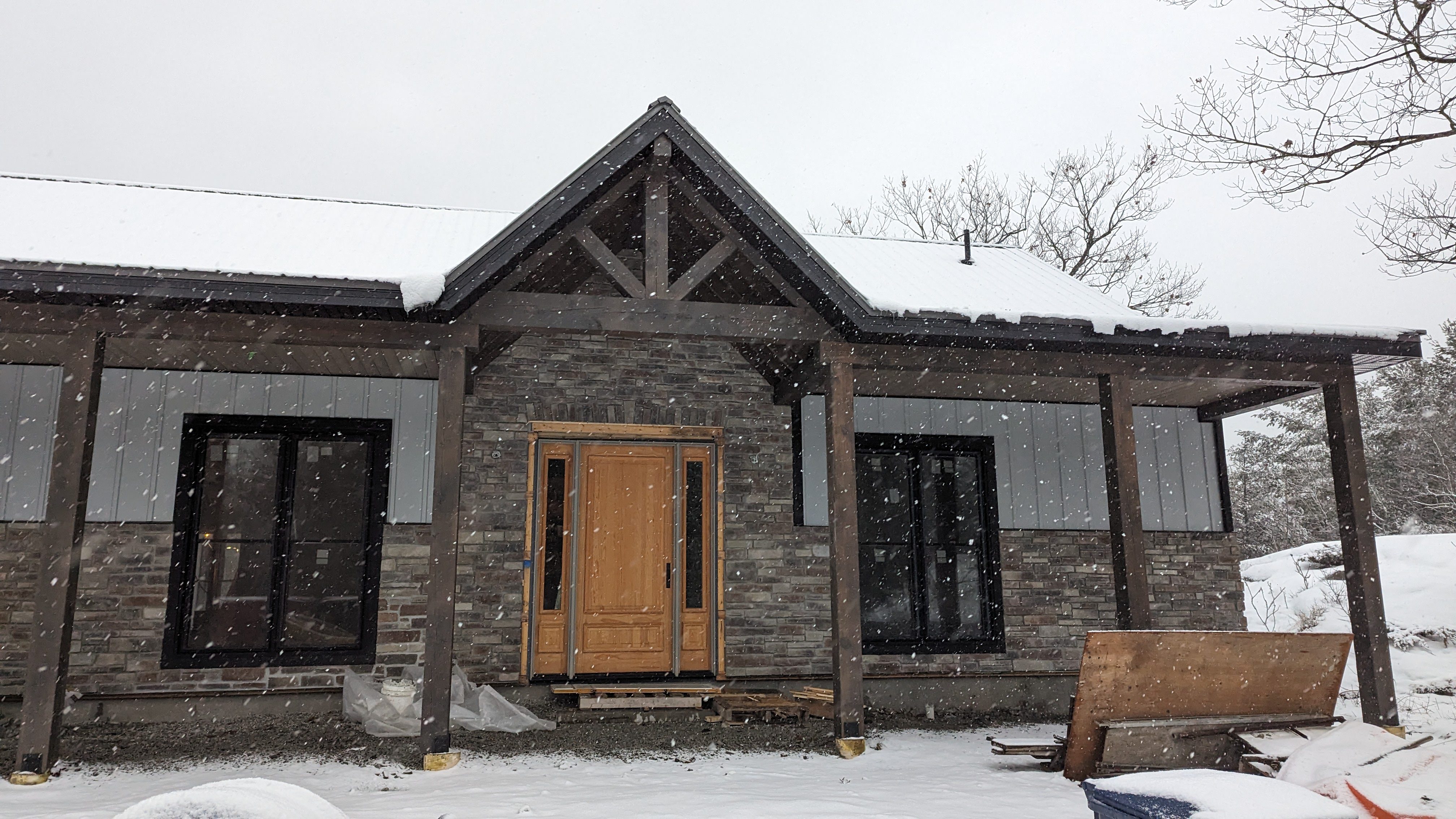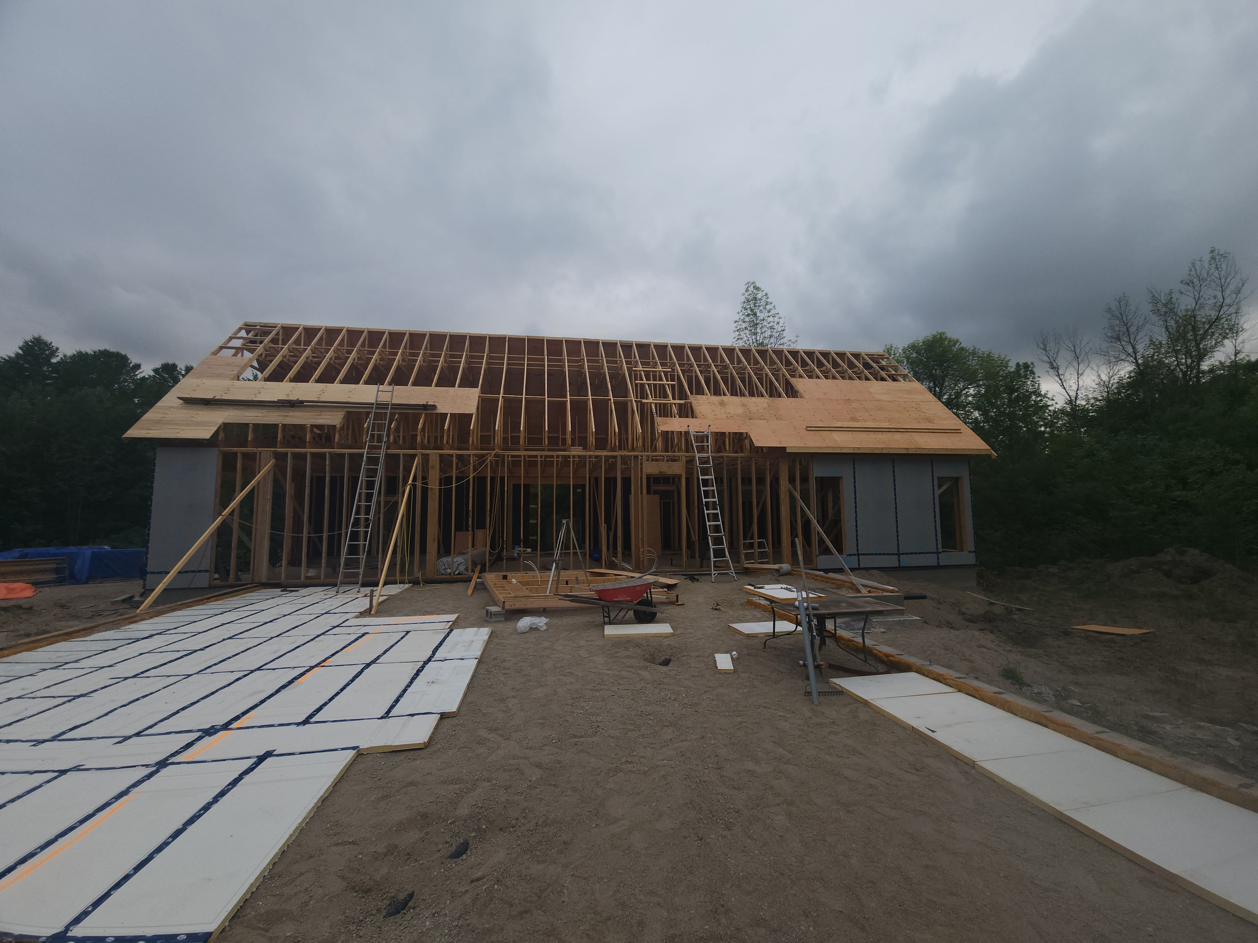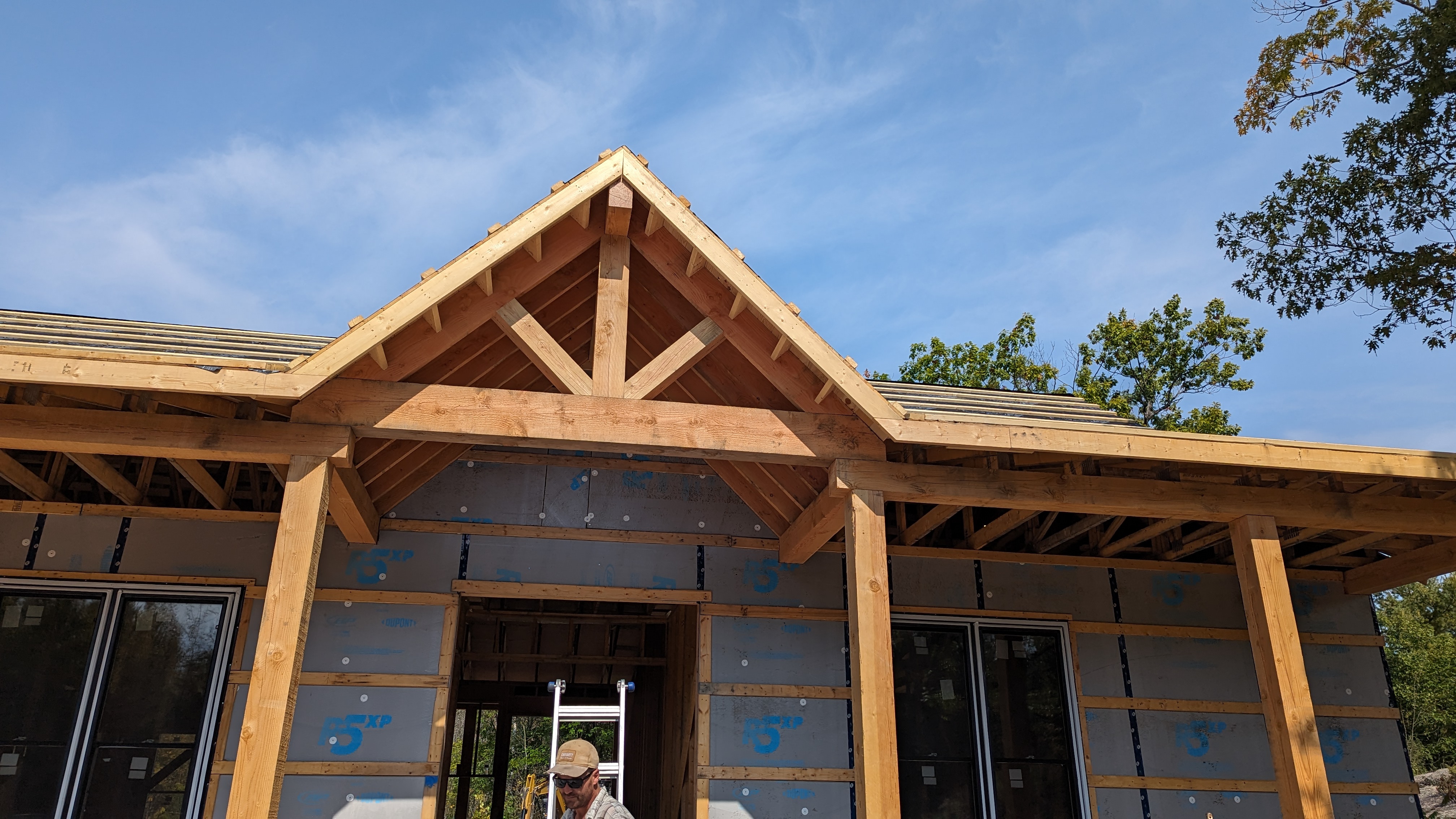 The Green-R-Panel kit included an I-Joist floor system, custom-manufactured wall panels, and engineered roof trusses—fabricated in a state-of-the-art facility and shipped with precision. This off-site construction method reduced material waste, sped up framing, and simplified remote coordination across provincial borders.