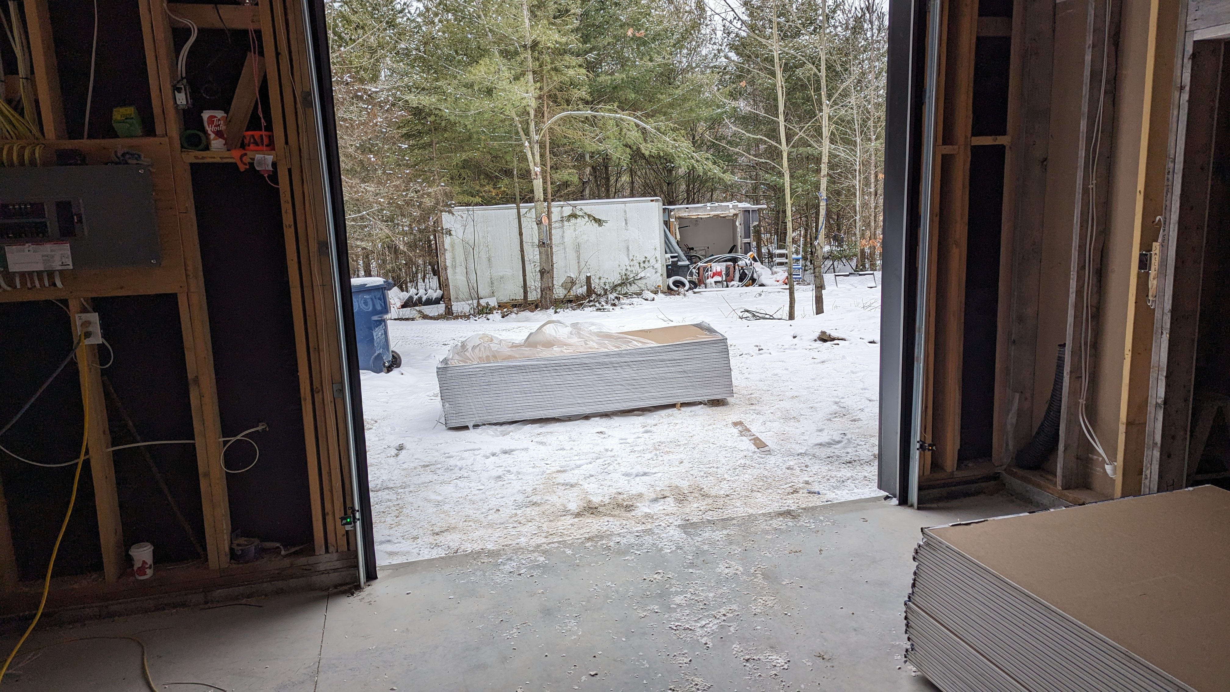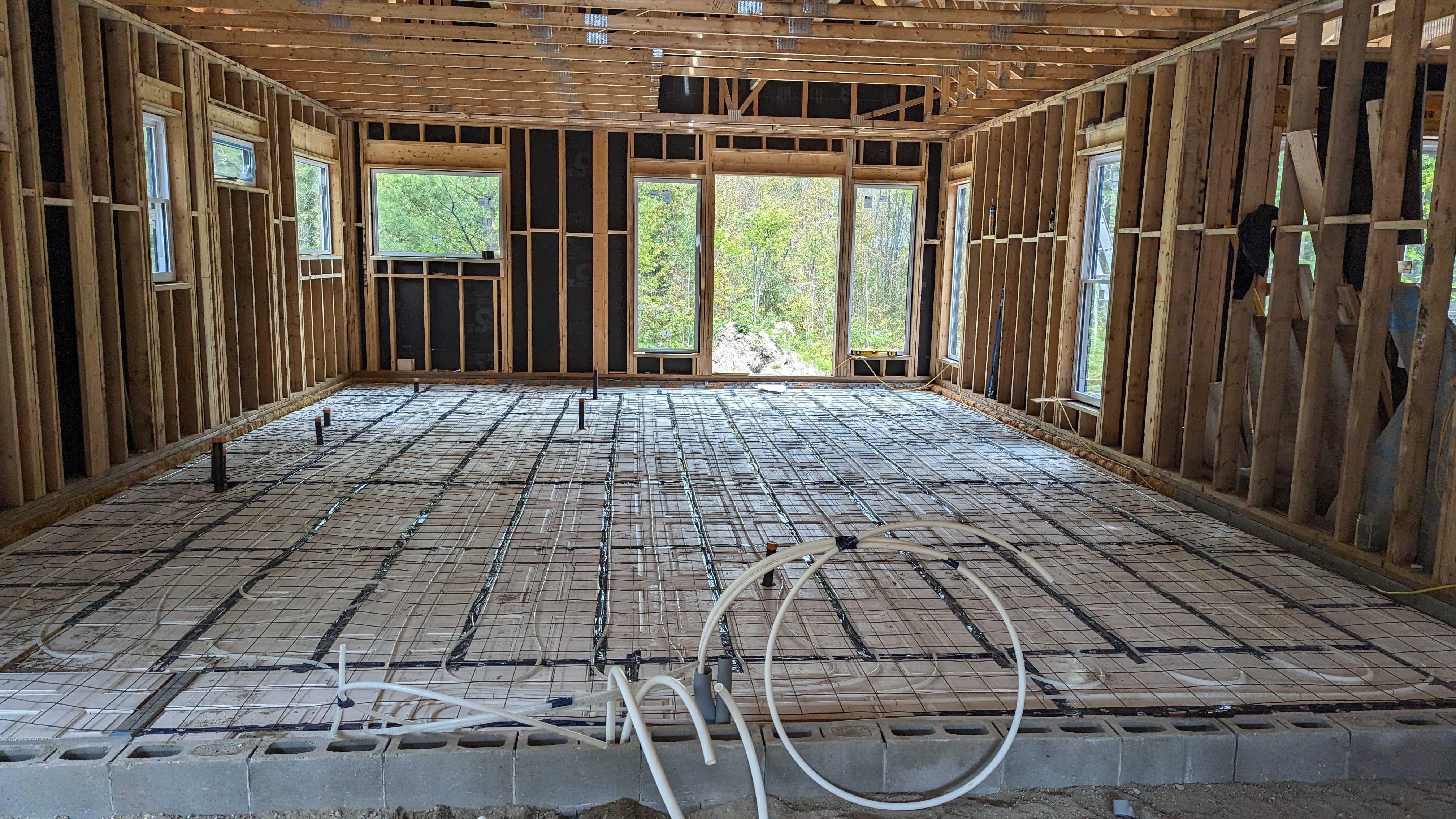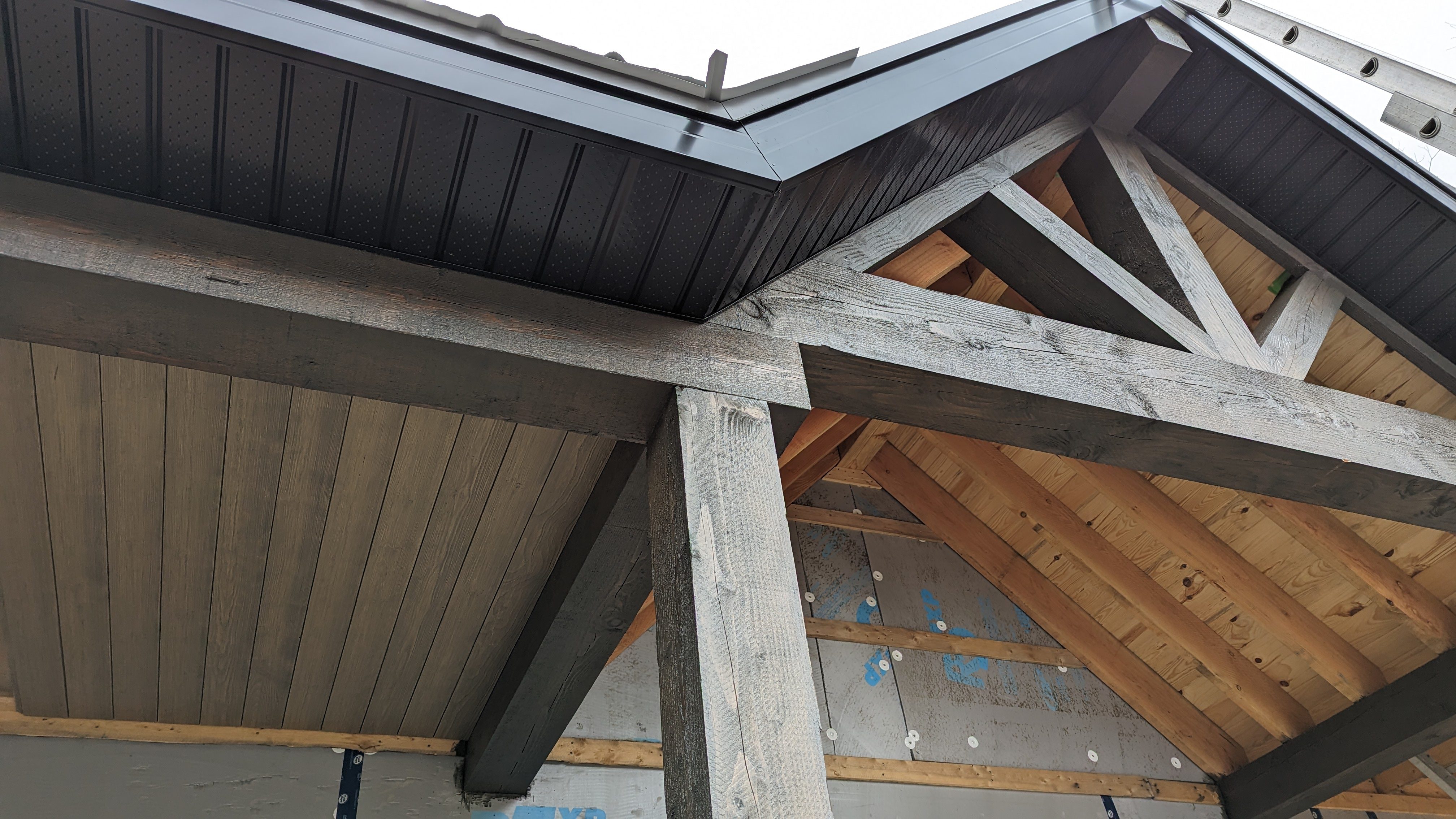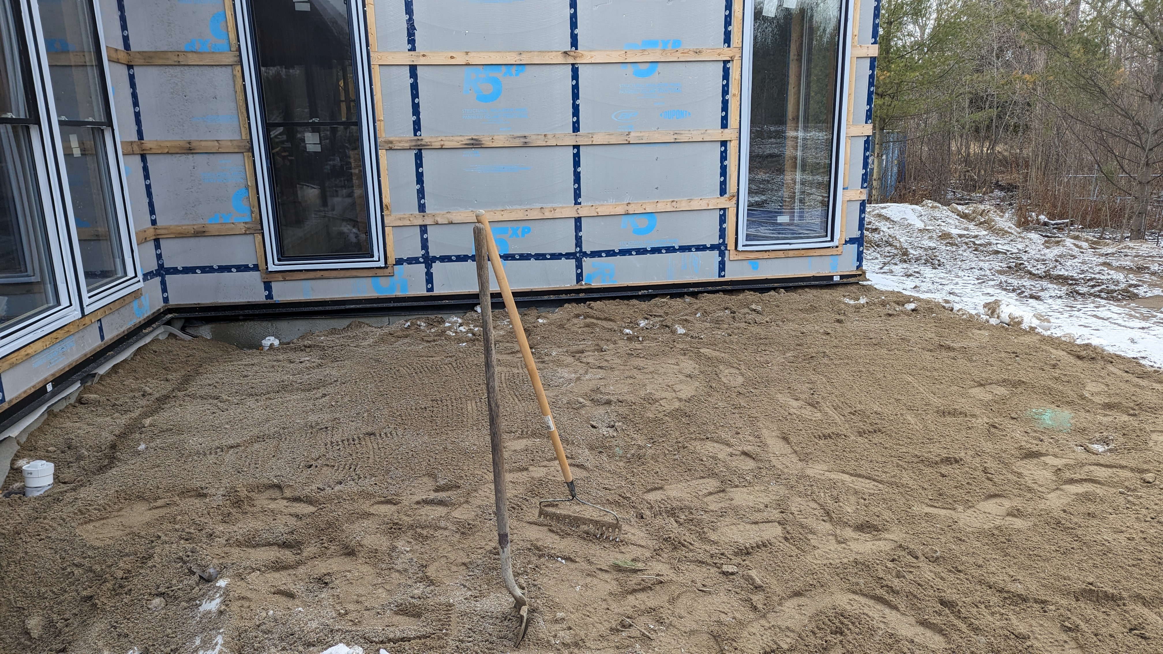 The Green-R-Panel kit included an I-Joist floor system, custom-manufactured wall panels, and engineered roof trusses—fabricated in a state-of-the-art facility and shipped with precision. This off-site construction method reduced material waste, sped up framing, and simplified remote coordination across provincial borders.
