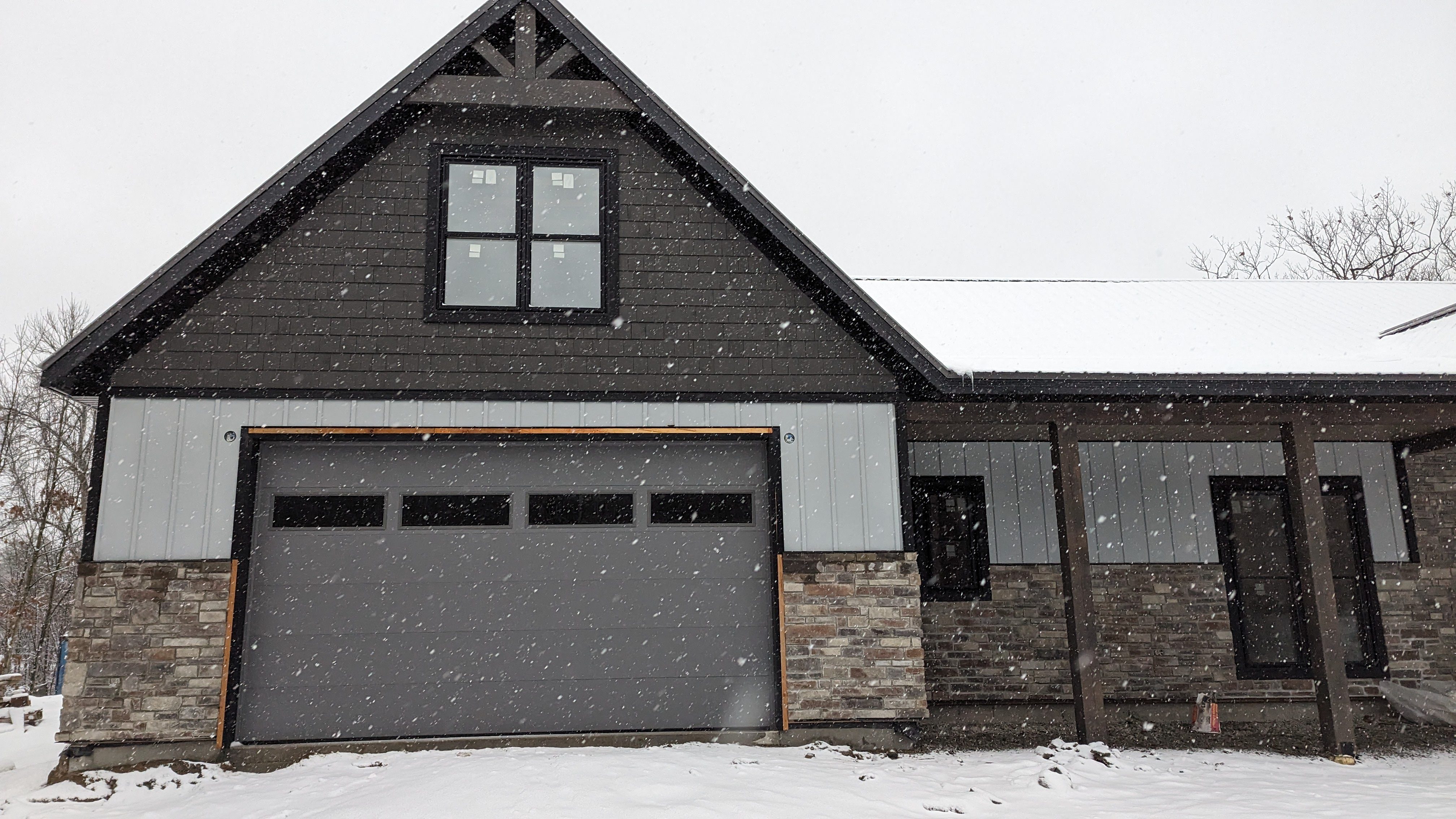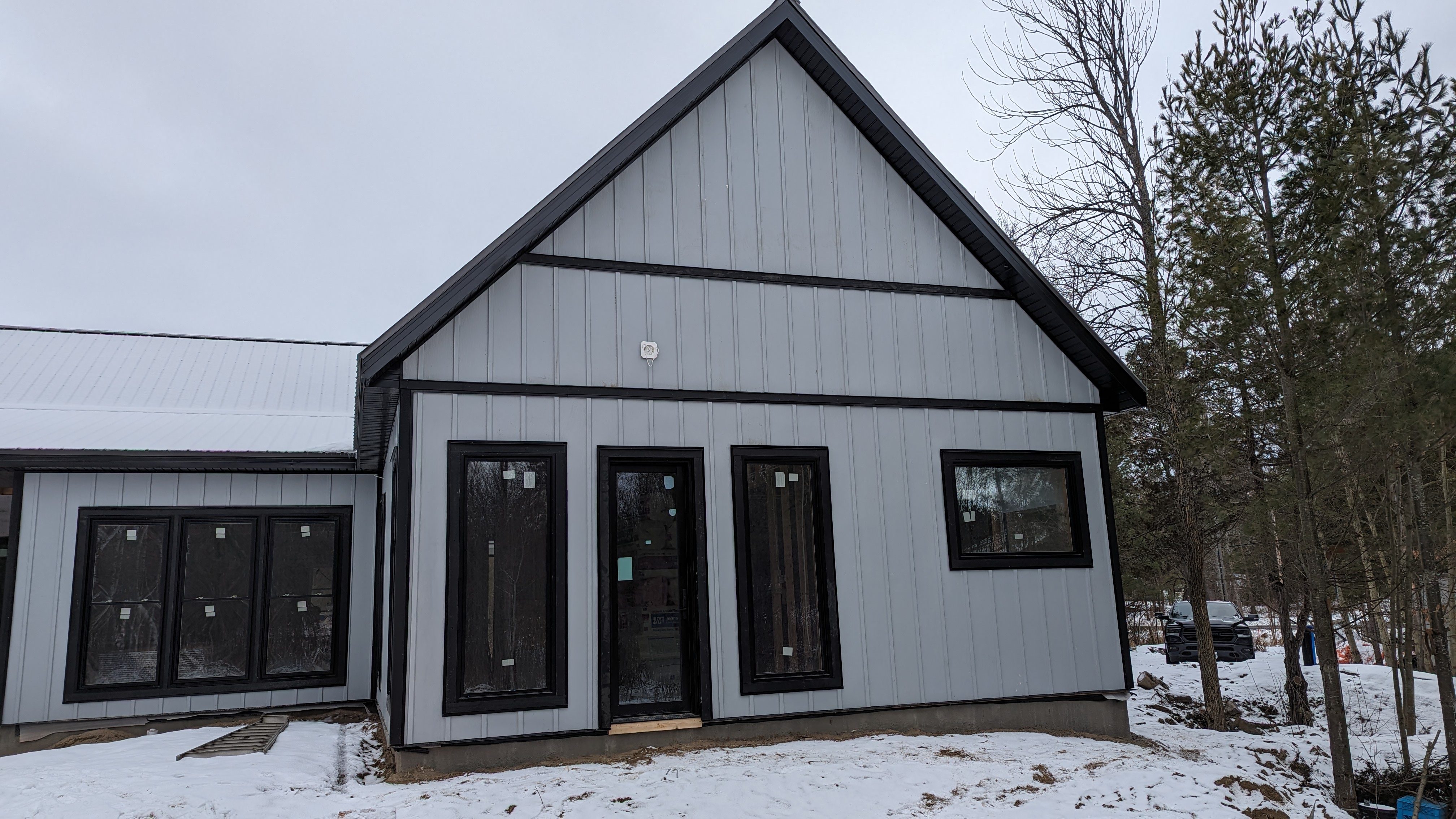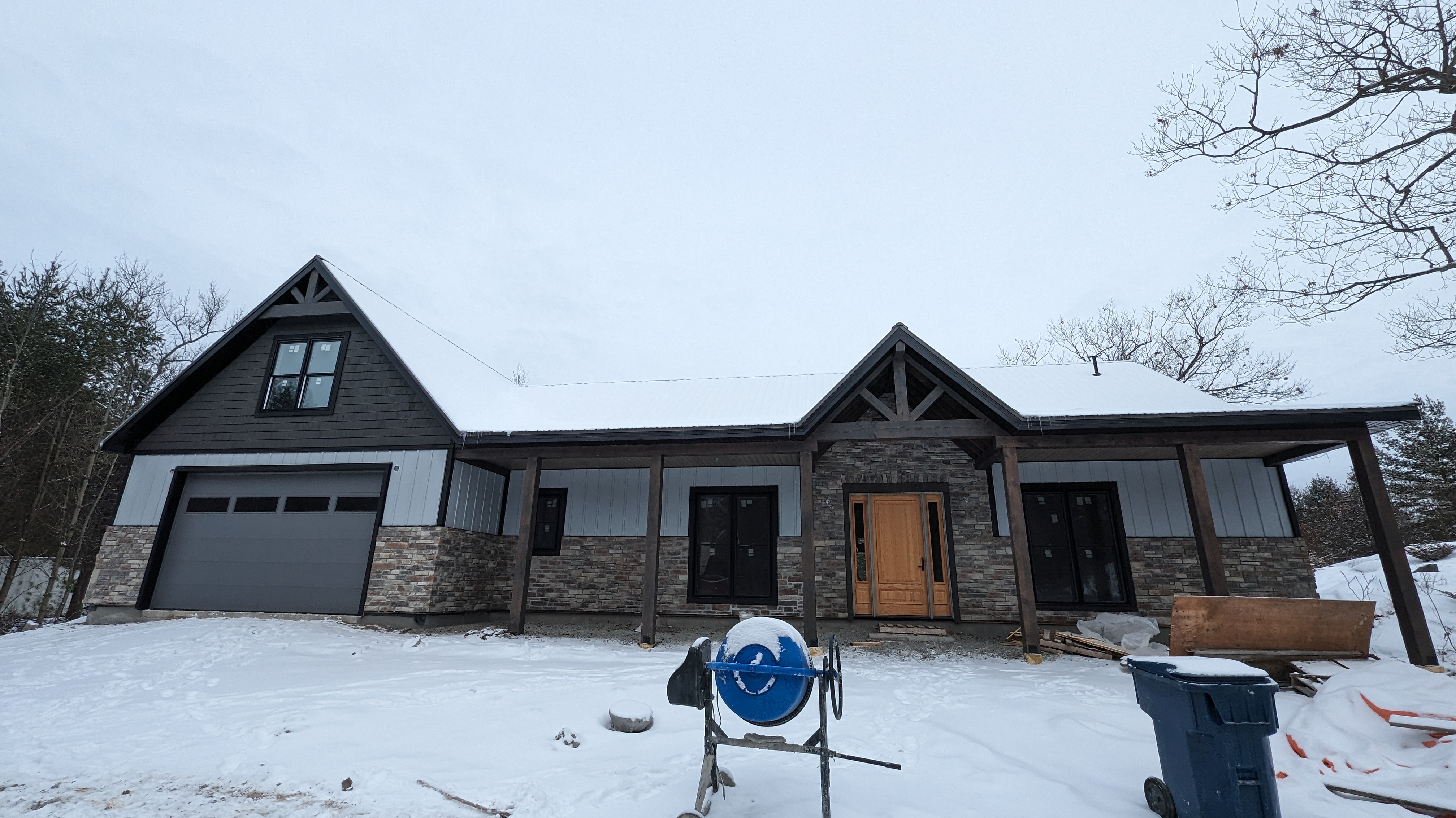 Built on the scenic shores of Georgian Bay, this 2,634 SF custom panelized home in Honey Harbour, Ontario, was designed for four-season use with 1,556 SF of covered garage and porch space—perfect for cottage country living. In an area known for challenging logistics, waterfront delivery, and strict code enforcement, this build showcases how Green-R-Panel supports Canadian homeowners and builders with smart, prefabricated solutions.