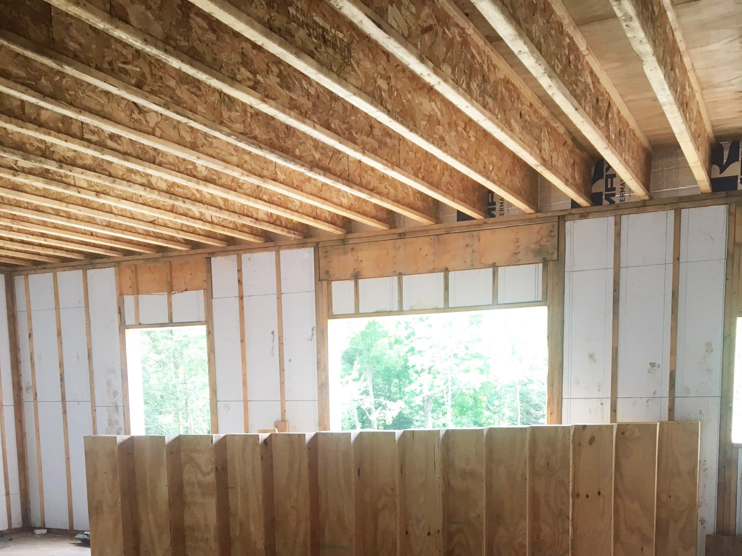 The Green-R-Panel kit included an I-Joist floor system, custom-manufactured wall panels and engineered roof trusses, all produced and delivered in build-sequenced bundles for efficient on-site assembly. The EZ SIPS system added insulation right into the framing process, reducing both install time and long-term heating costs—crucial for homes in Vermont’s northern climate zone.