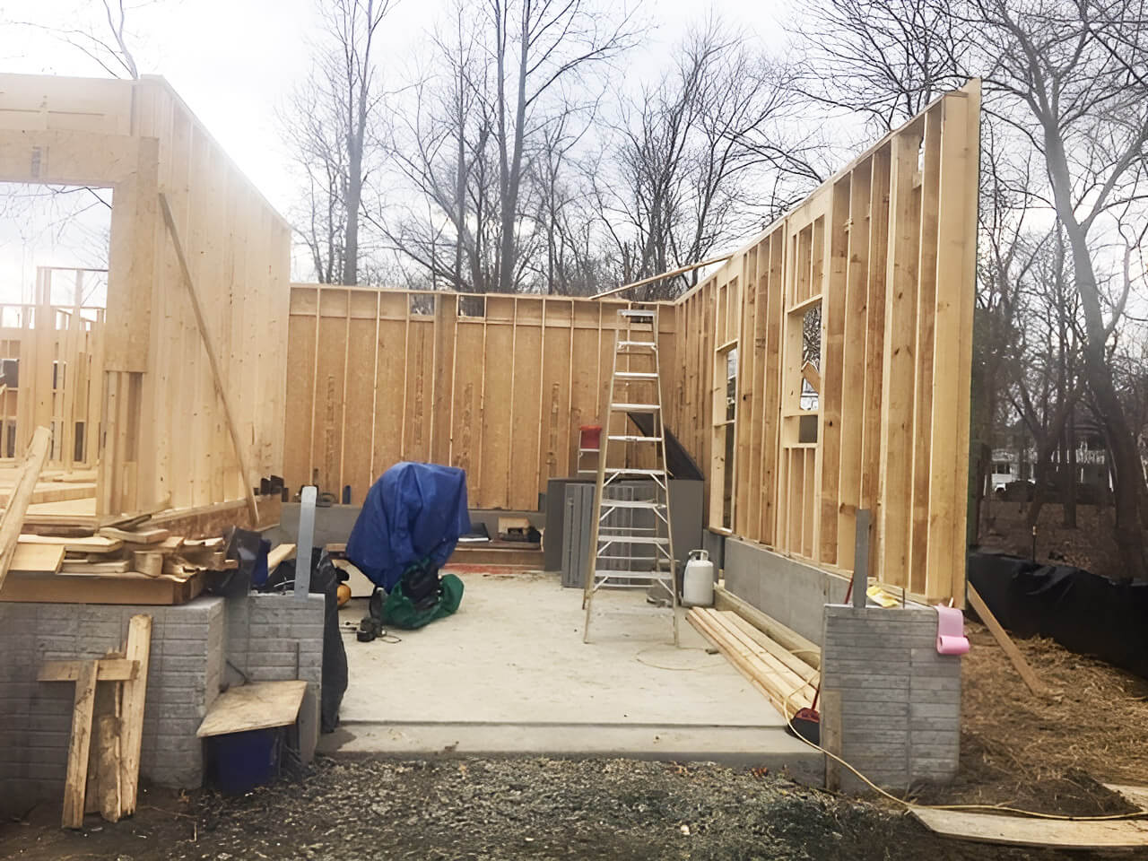 • Framing: Kiln-dried 2×4 or 2×6 lumber at 16″ on center, delivering strength and stability.